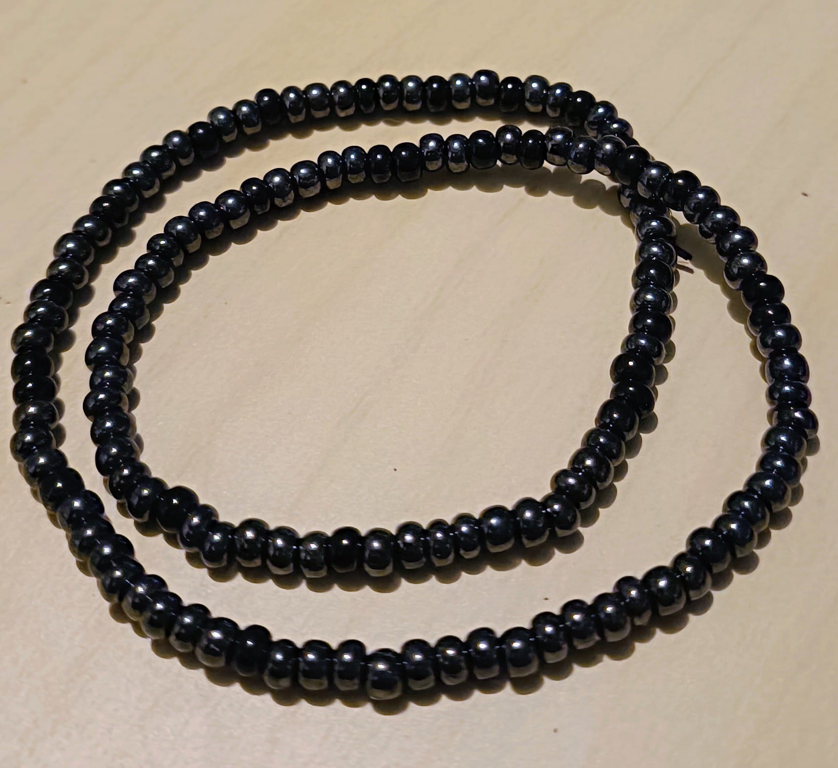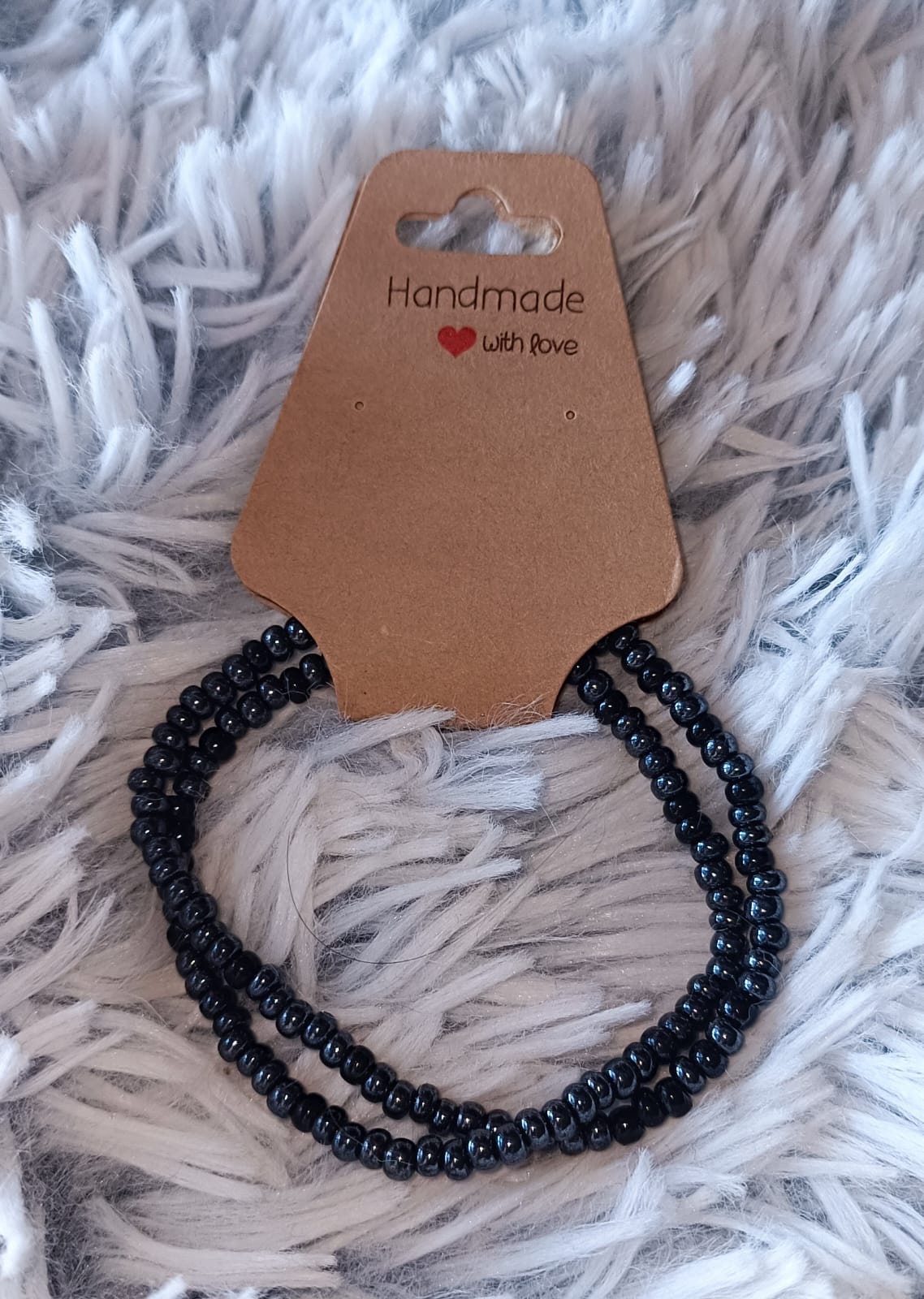 Minimalistický náramek z drobných černých korálků , které se jemně lesknou a působí velmi elegantně .