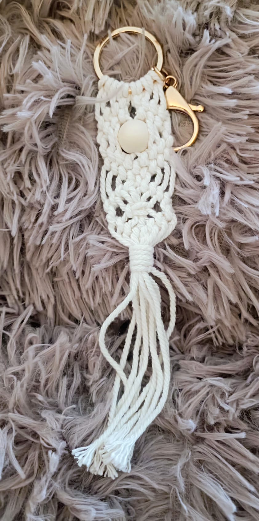 Elegantně ručně vázaný macramé přívěsek v bílé barvě .