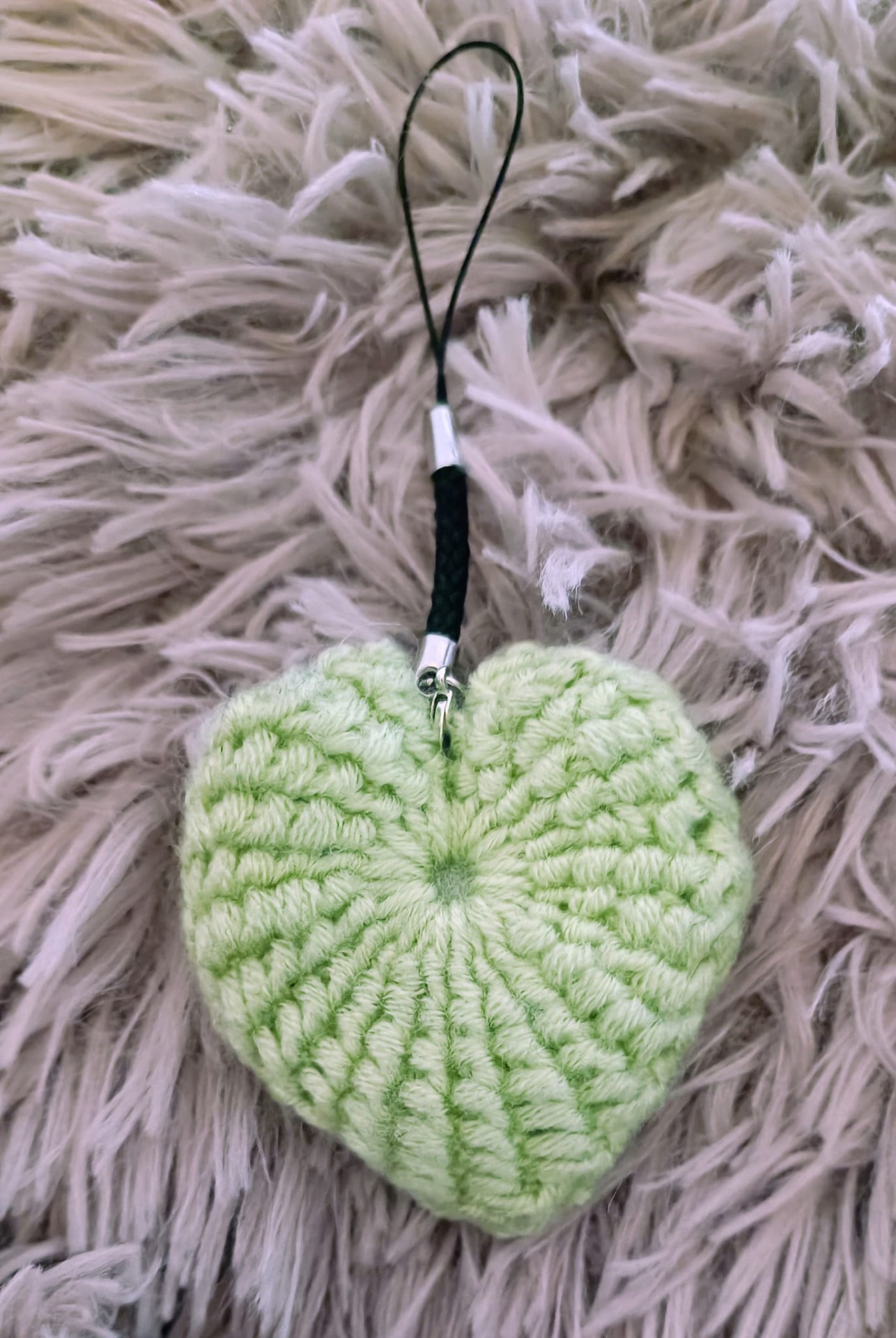Jemné háčkované srdíčko se světle zelenou barvou a poutkem .