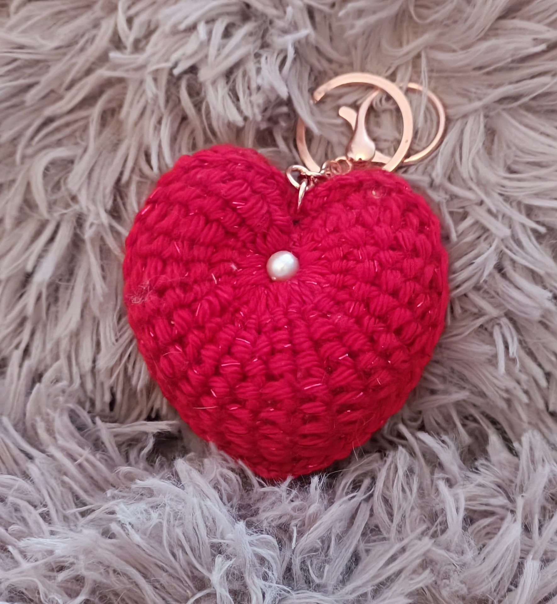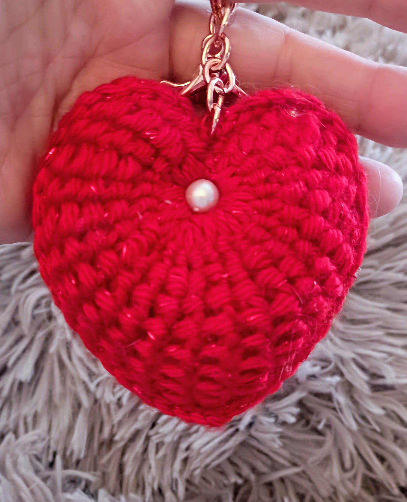 Malé ručně háčkované 3D srdíčko , plněné měkkou výplní ,