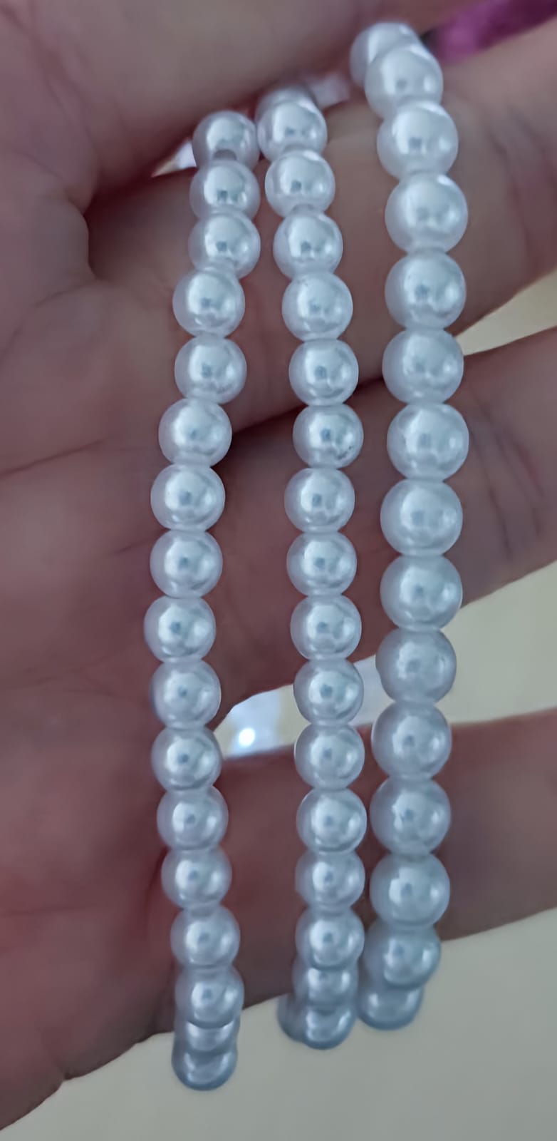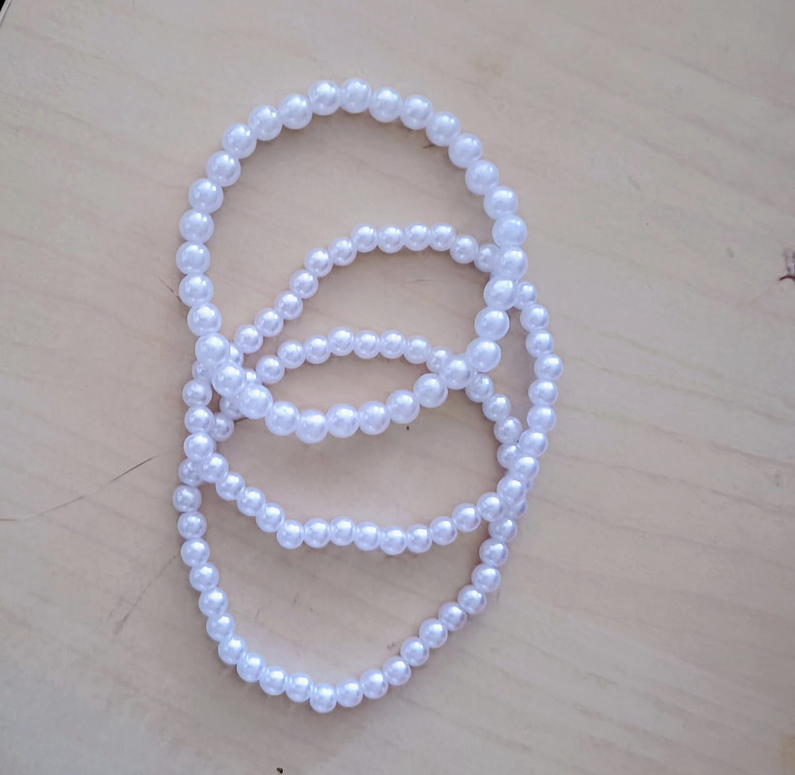 Jemně elastický náramek z drobných bílých perliček , který dodává každému outfitu