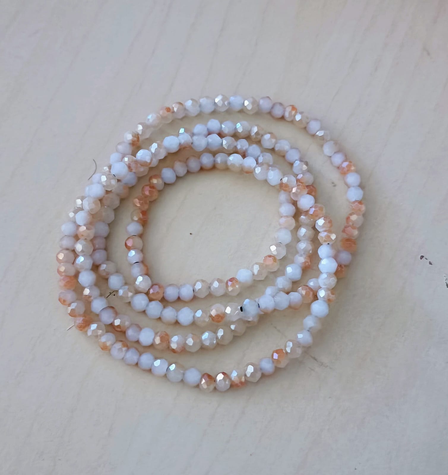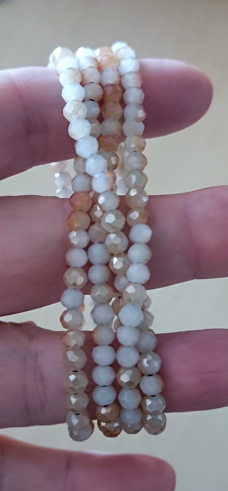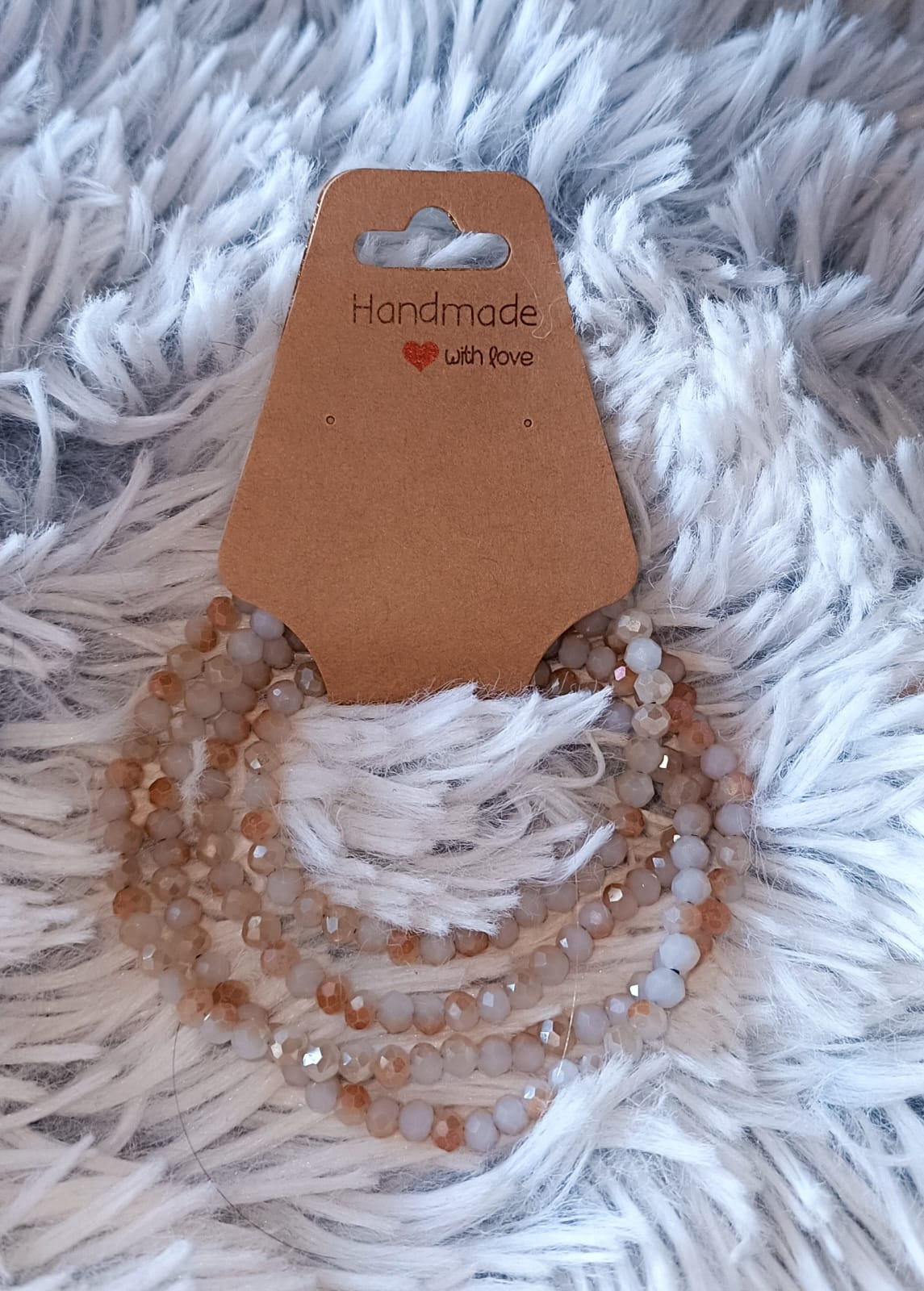 Náramek z broušených jemně lesklých korálků v teplých přírodních tónech .